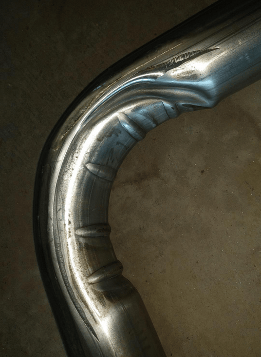 You can clearly see that the flow will be effected by the crushing of the tube. The dents and crushing will create turbulence when the gases pass through the elbow which in turn will decrease the flow and effect the overall performance if used on a exhaust.